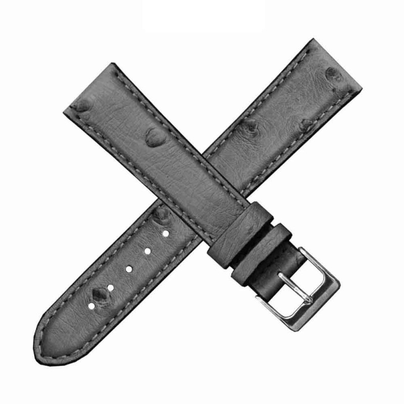 Bracelet de montre AUTRUCHE véritable - BIRDY - au tannage végétal teinté en cuve. Coupe cut edge latérale, couture beige et bombé léger. Structure d'épaisseur de 3.5mm dégressive avec doublure en cuir hypoallergénique. Boucle inox marine. Conçu pour les montres classiques élégantes ou vintage.